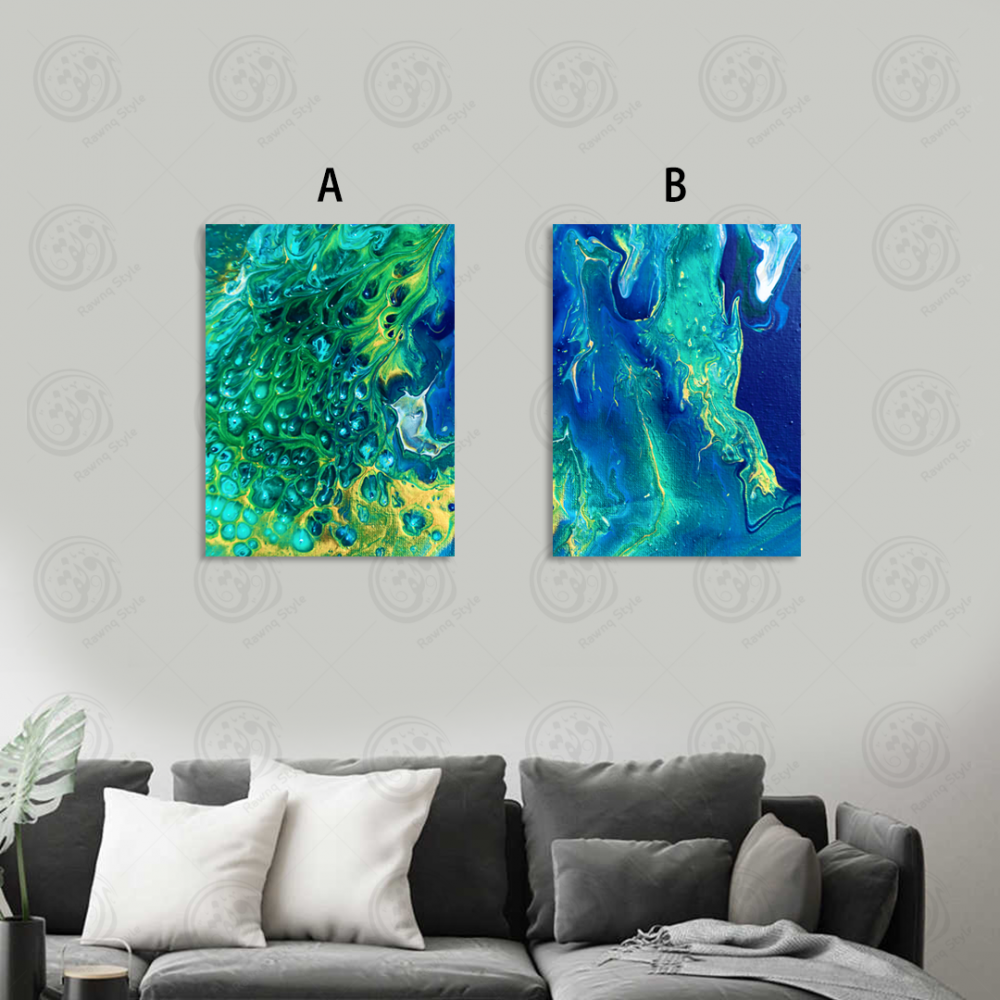 მწვანე და ლურჯი აბსტრაქტული ხელოვნების ნახატები - E2PR-20253