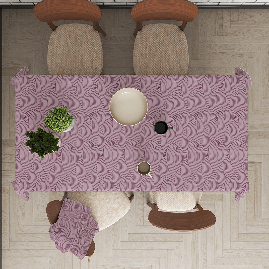 მართკუთხა სუფრის გადასაფარებლები - დეკორატიული ტალღების უნაკერო ნიმუში - პასტელი იასამნისფერი - ნაცრისფერი ნაცრისფერი - M10124