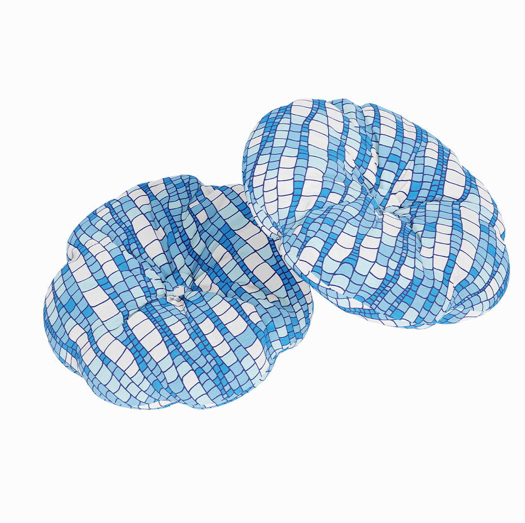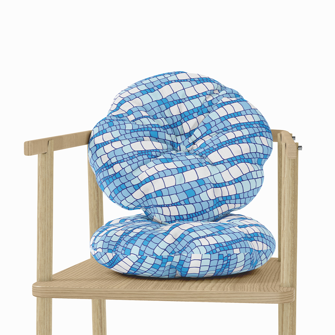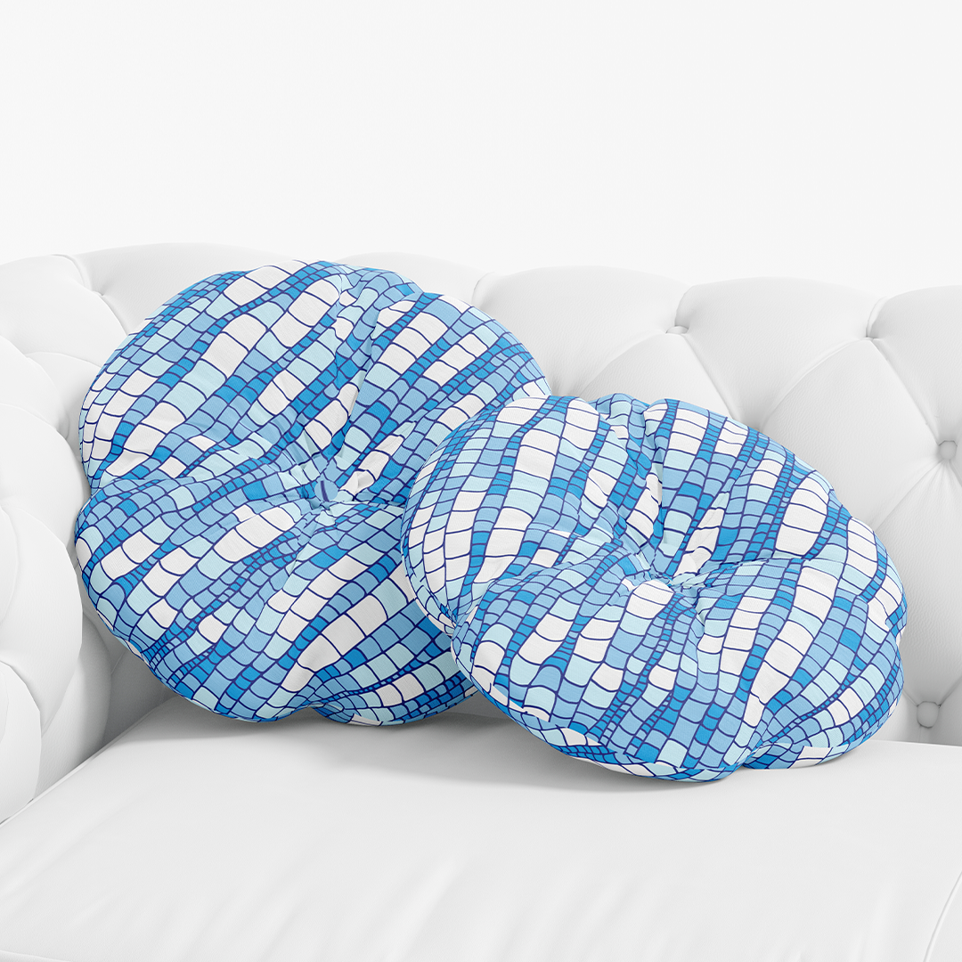 მრგვალი სასროლი ბალიში - აბსტრაქტული უნაკერო ნიმუში ლურჯი ტალღების ტექსტურირებული წყლის ზედაპირის დეკორატიული მოზაიკის დიზაინი - M10107