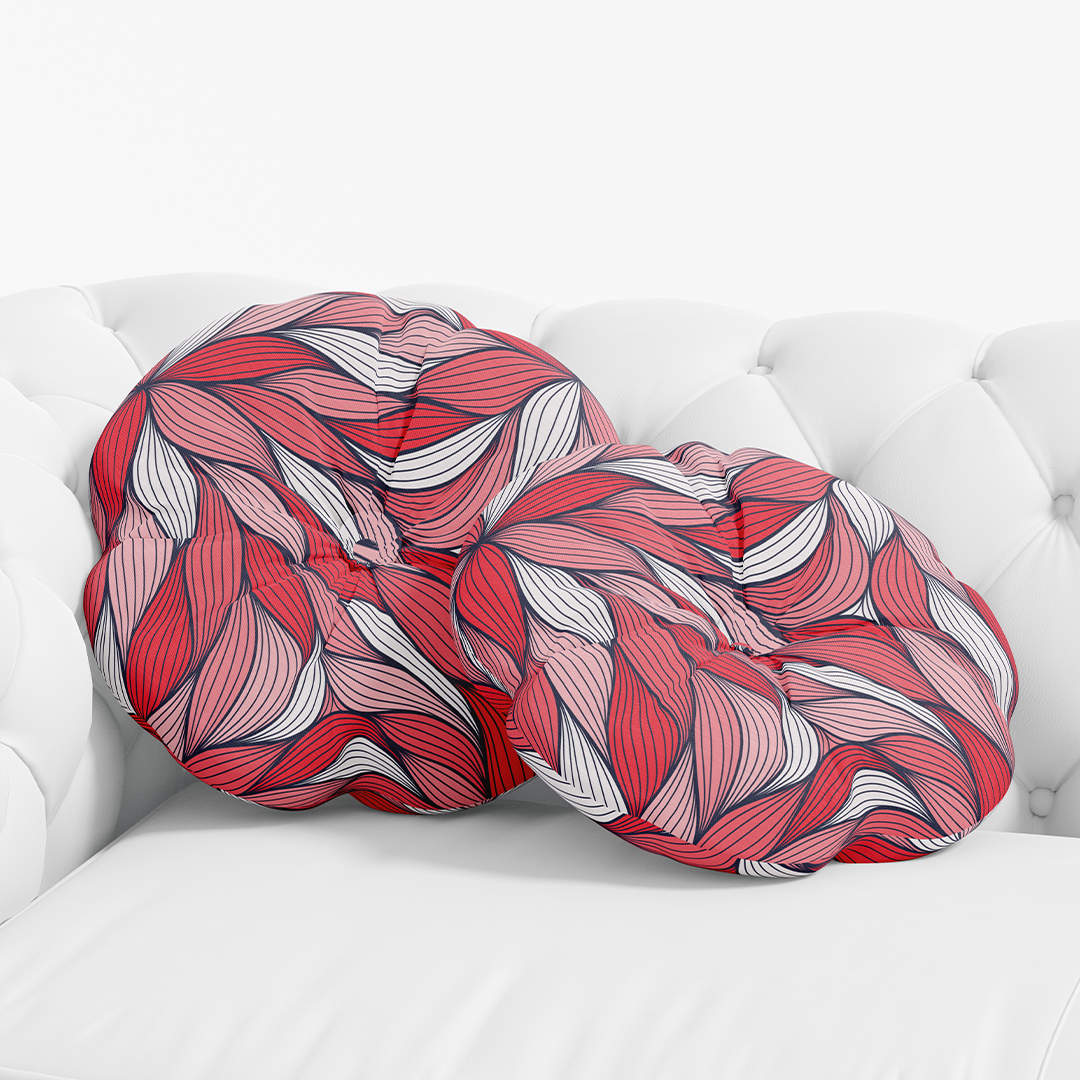 მრგვალი ბალიში - აბსტრაქტული ტალღოვანი ხაზების უწყვეტი ნიმუშები - მყარი ვარდისფერი - ნაცრისფერი - M10126