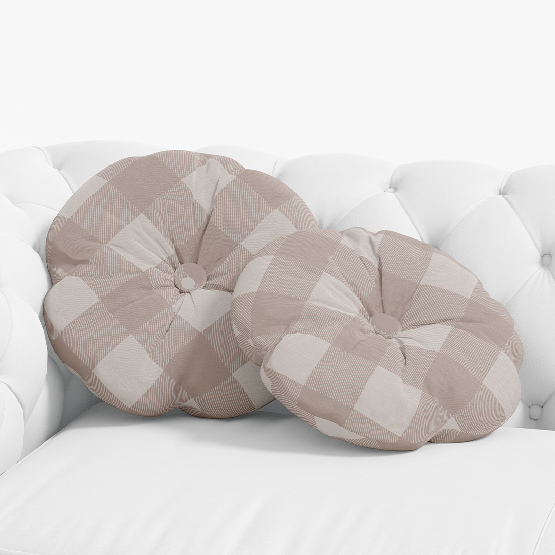 მრგვალი სასროლი ბალიში - ყავისფერი შეტანილი უნაკერო ნიმუში - m10085