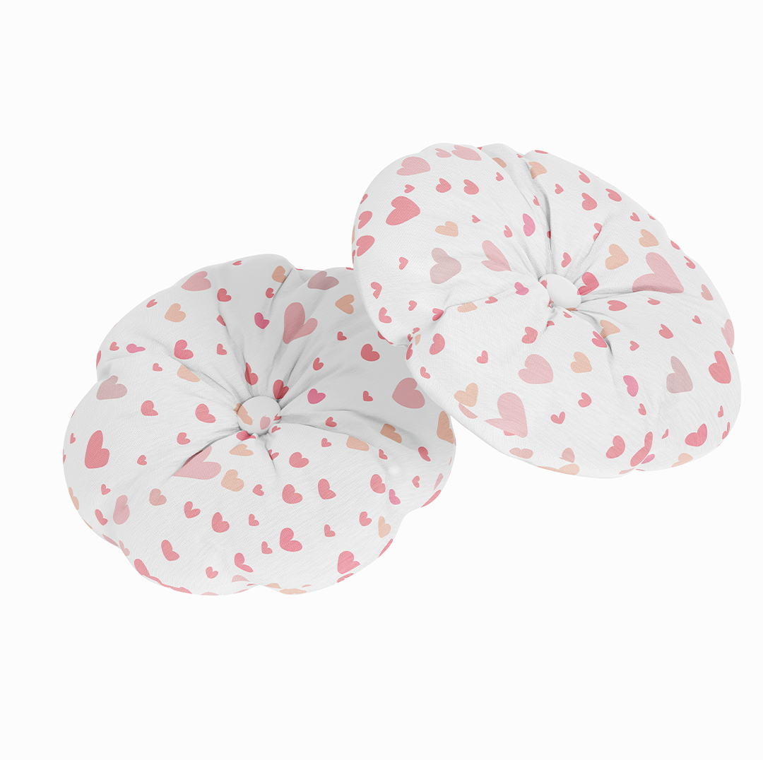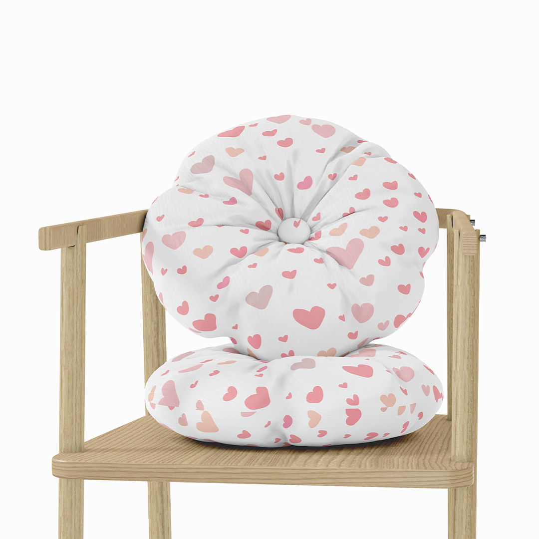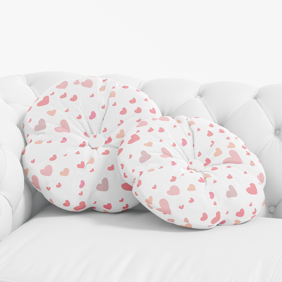 მრგვალი სასროლი ბალიში - საყვარელი გულის ნიმუში - თეთრი - ვარდისფერი - M10101