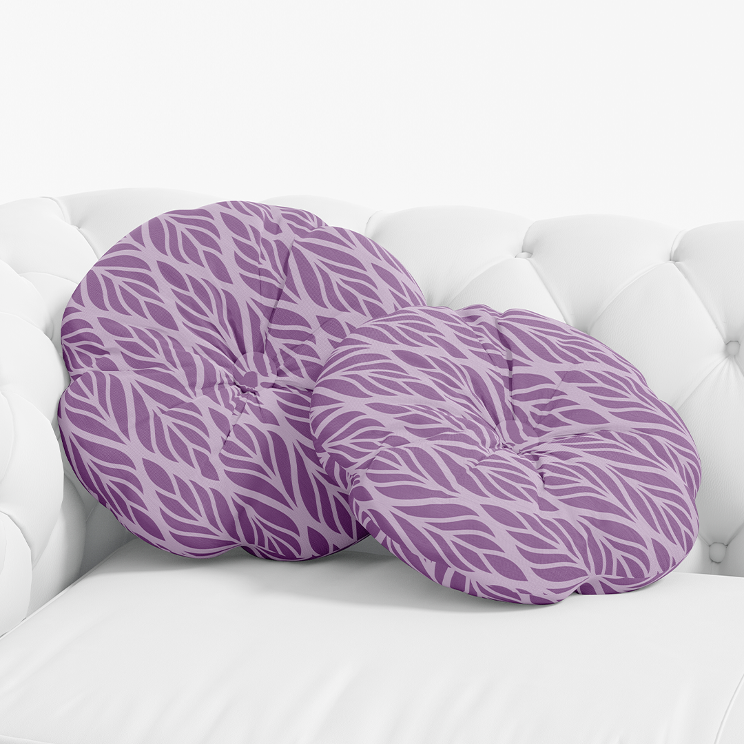 მრგვალი სასროლი ბალიში - ეთნიკური ყვავილების უნაკერო ნიმუში. მეწამული ჩრდილები -m10063