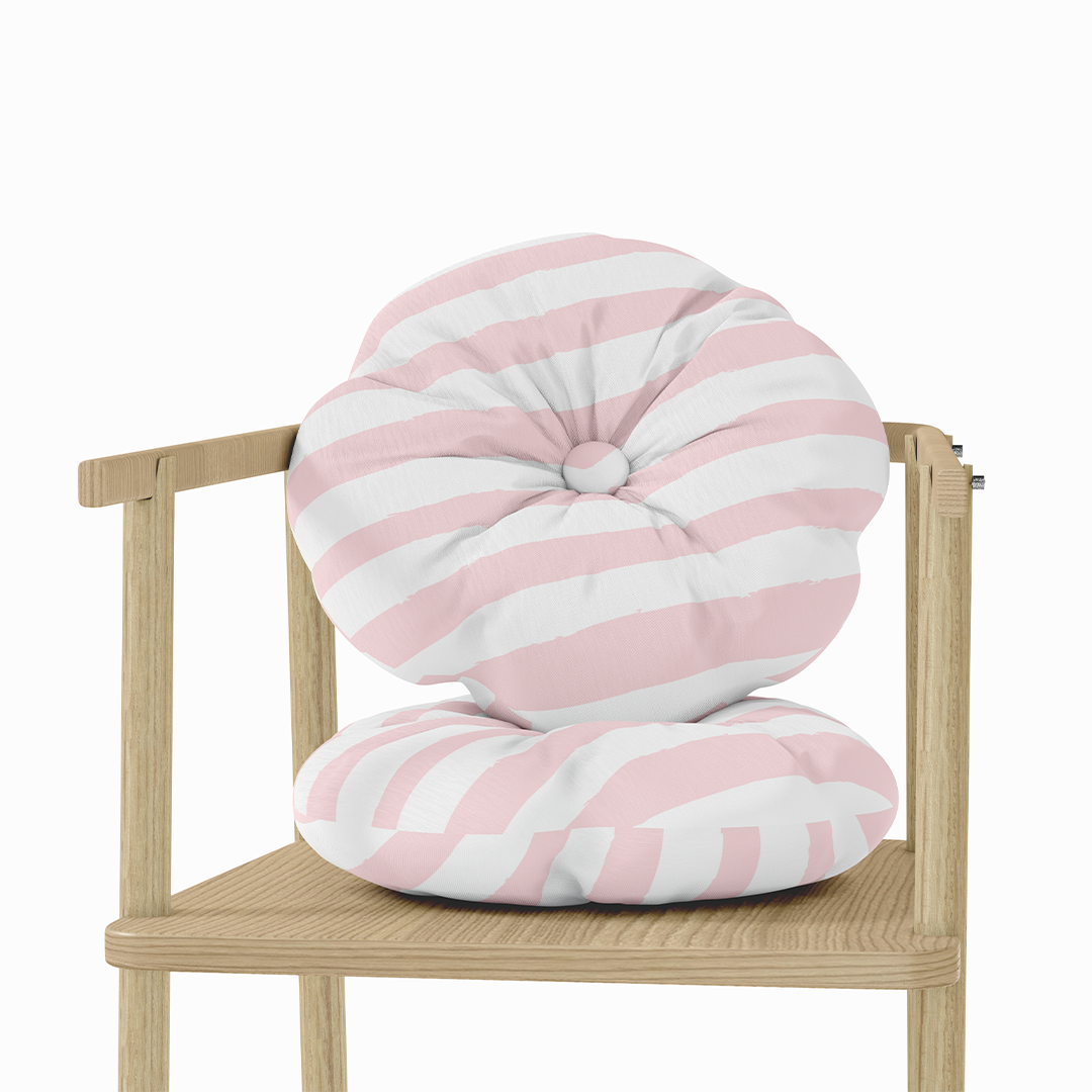 მრგვალი სასროლი ბალიში - ყვავილოვანი უნაკერო ხაზები თეთრი და ვარდისფერი -m10029