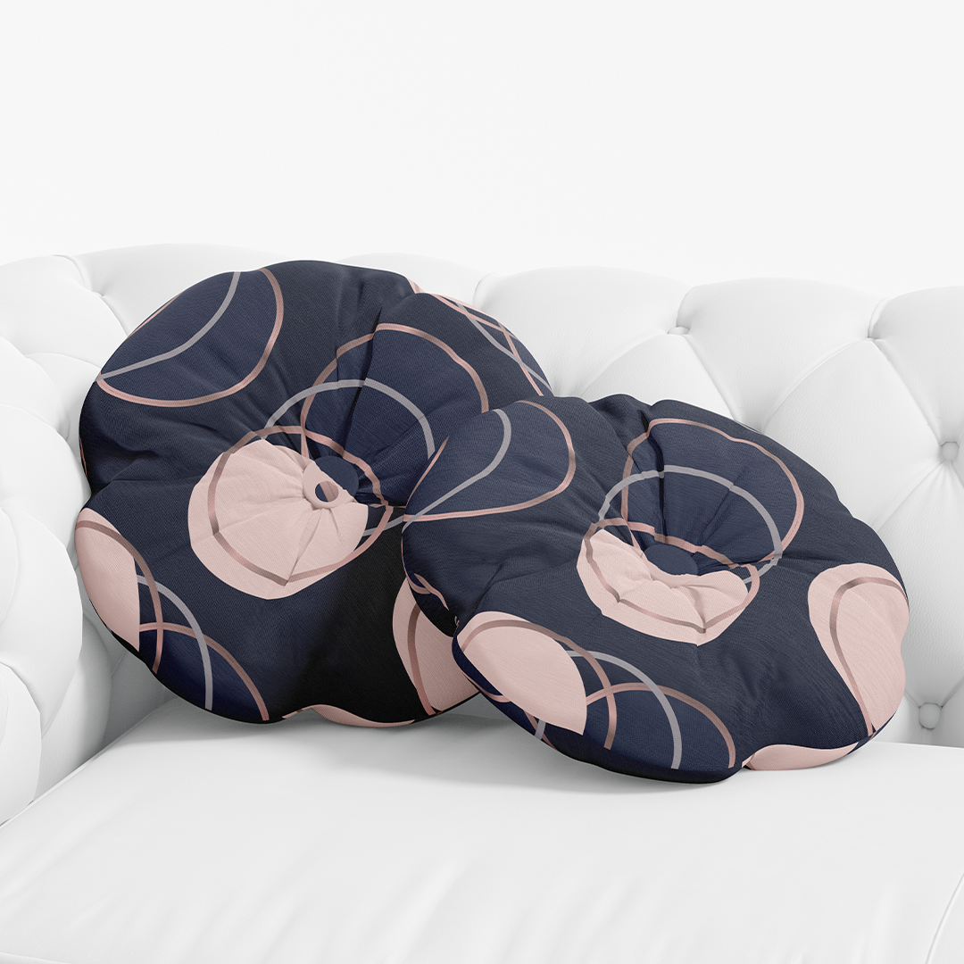მრგვალი სასროლი ბალიში - ფუფუნების გეომეტრიული ნიმუში. მოდის ფონი შავი და ოქროსფერი ვარდი -m10036