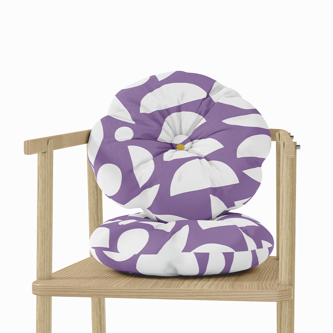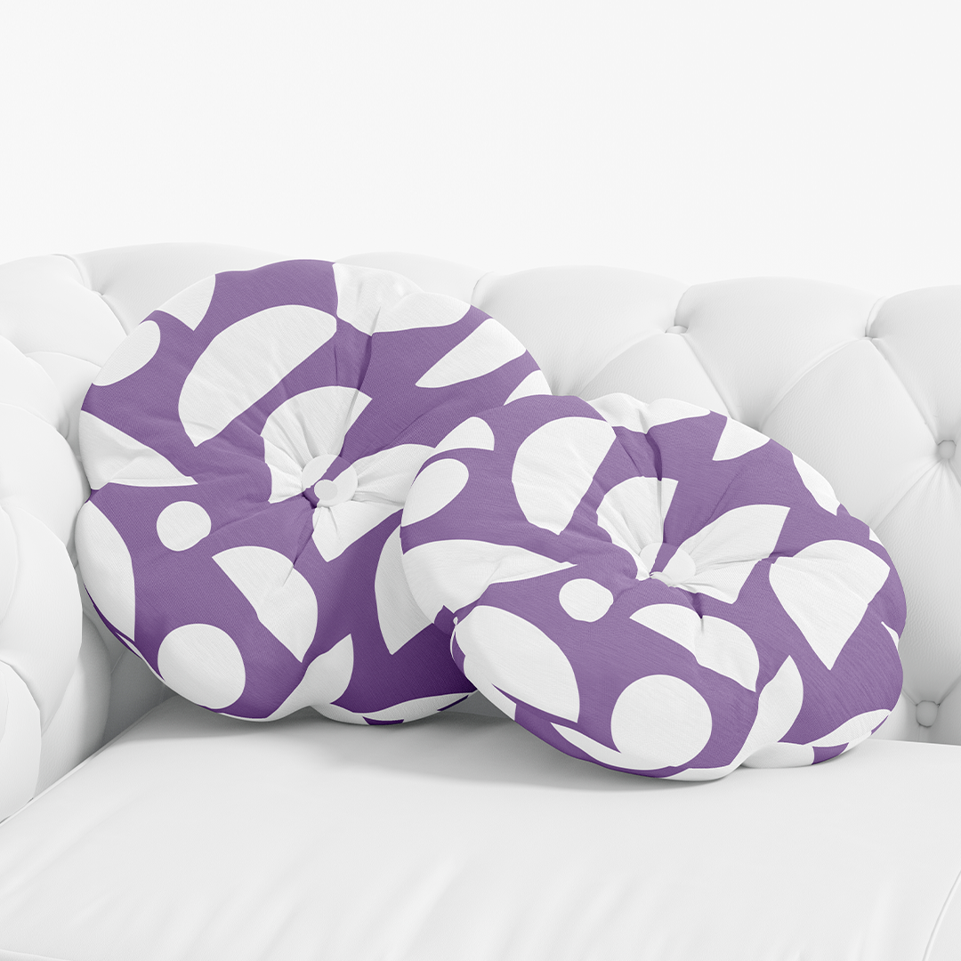 მრგვალი სასროლი ბალიში - მინიმალური ელეგანტური ხაზის ფუნჯის შტრიხების ფორმები და ხაზი შიშველ ფერებში იასამნისფერი და თეთრი -m10020