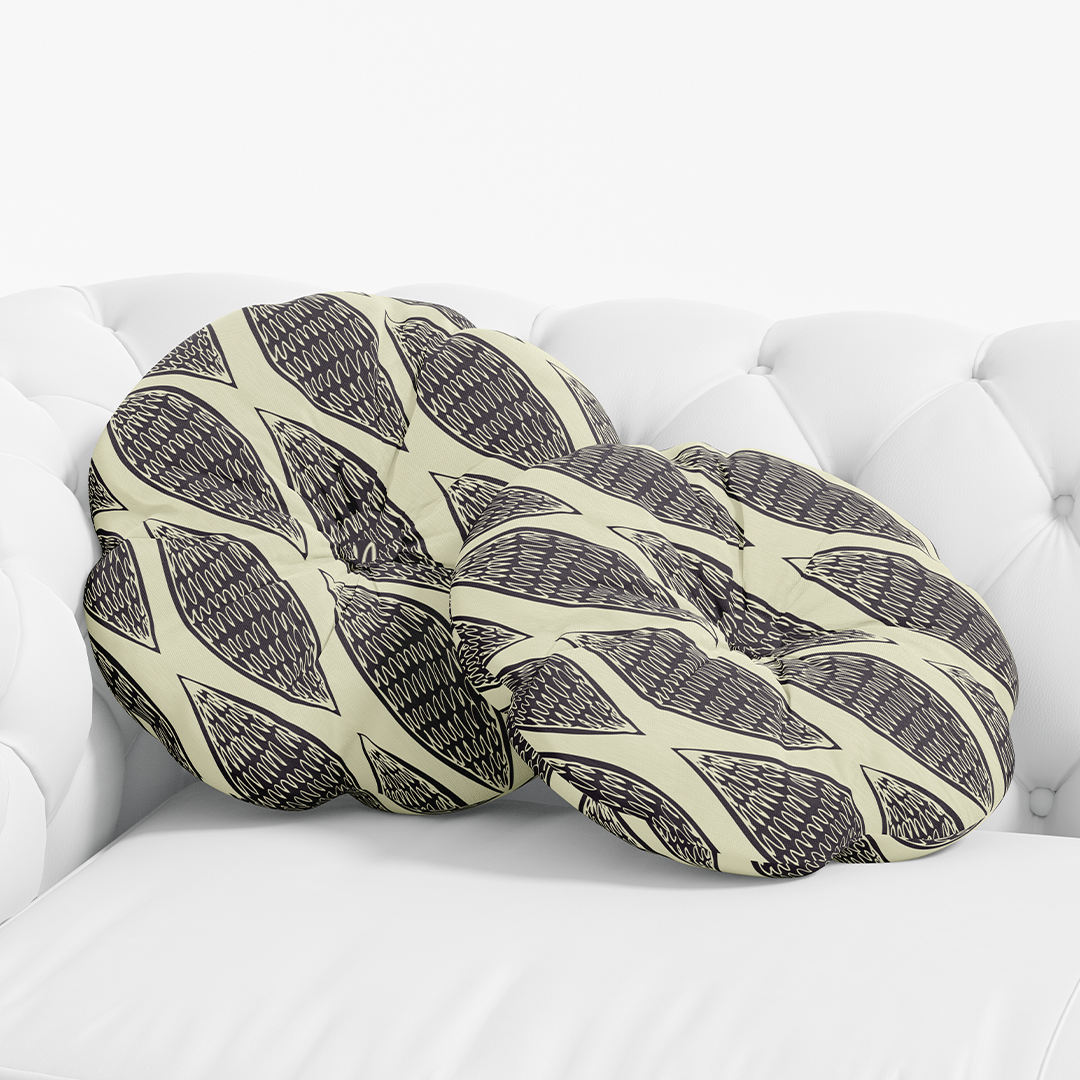 მრგვალი სასროლი ბალიში - უწყვეტი აბსტრაქტული ნიმუშები - ანტიკვარული თეთრი - შავი - კრემისფერი - M10121