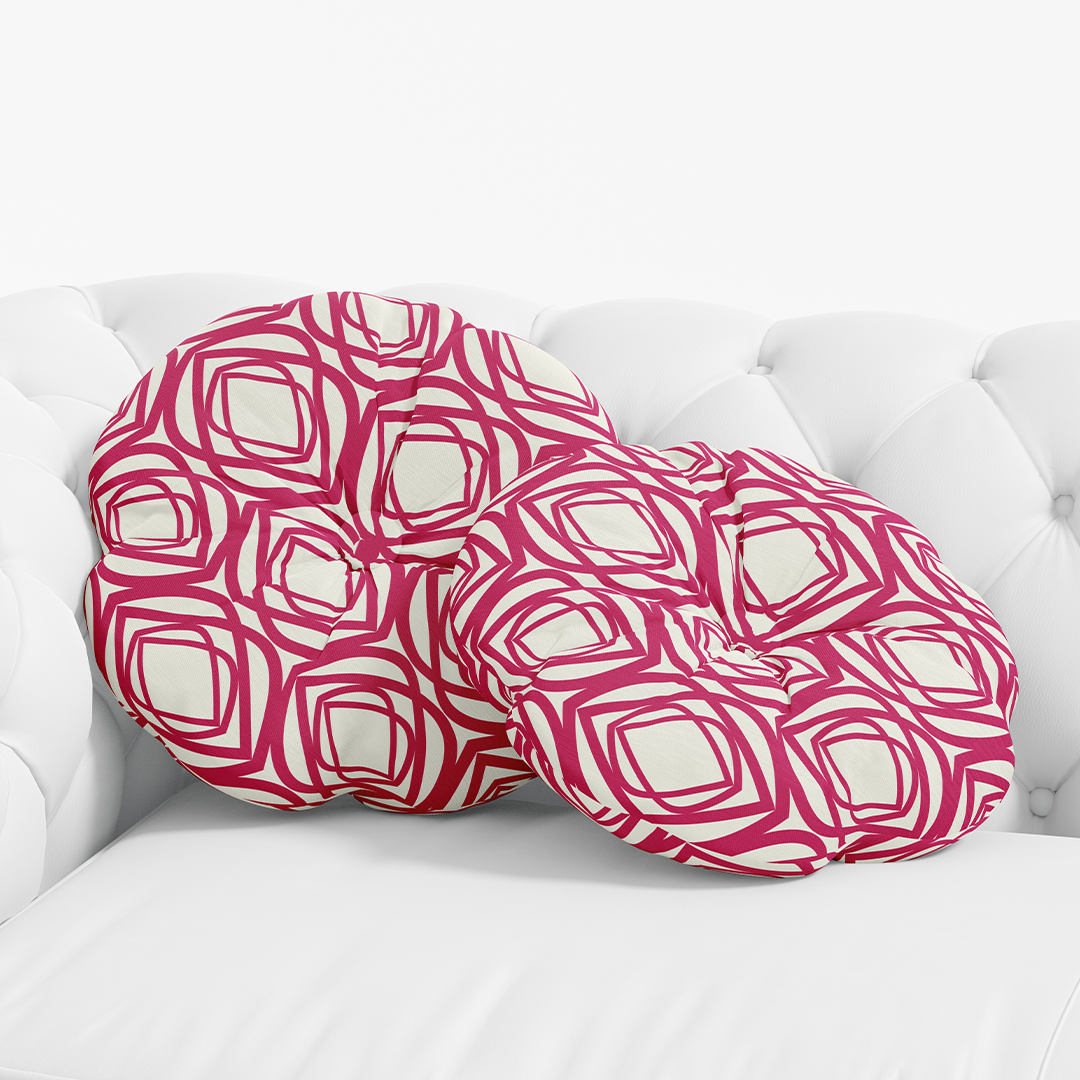 მრგვალი სასროლი ბალიში - ტარტანის პლედი უნაკერო ნიმუშები - დამწვარი ვარდისფერი - ანტიკური თეთრიm10097