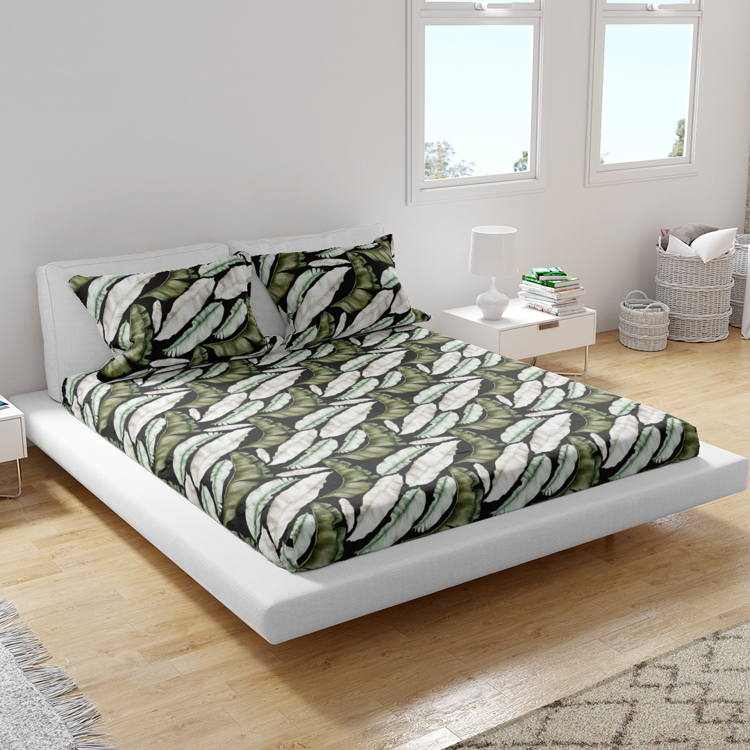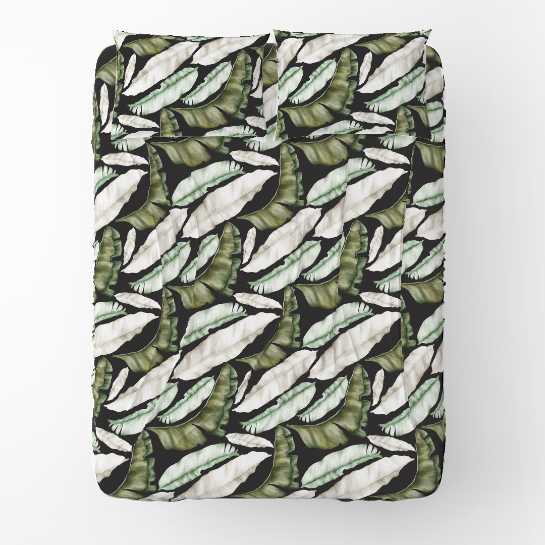 ფურცლის ნაკრები - ელეგანტური უნაკერო ტროპიკული ფოთლების დიზაინი - მწვანე - თეთრი - M10117