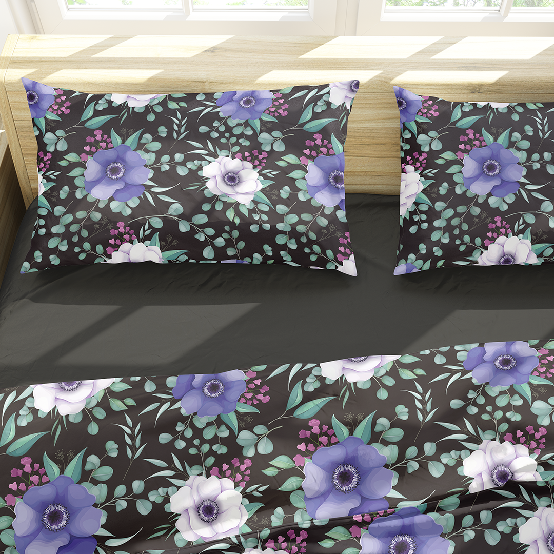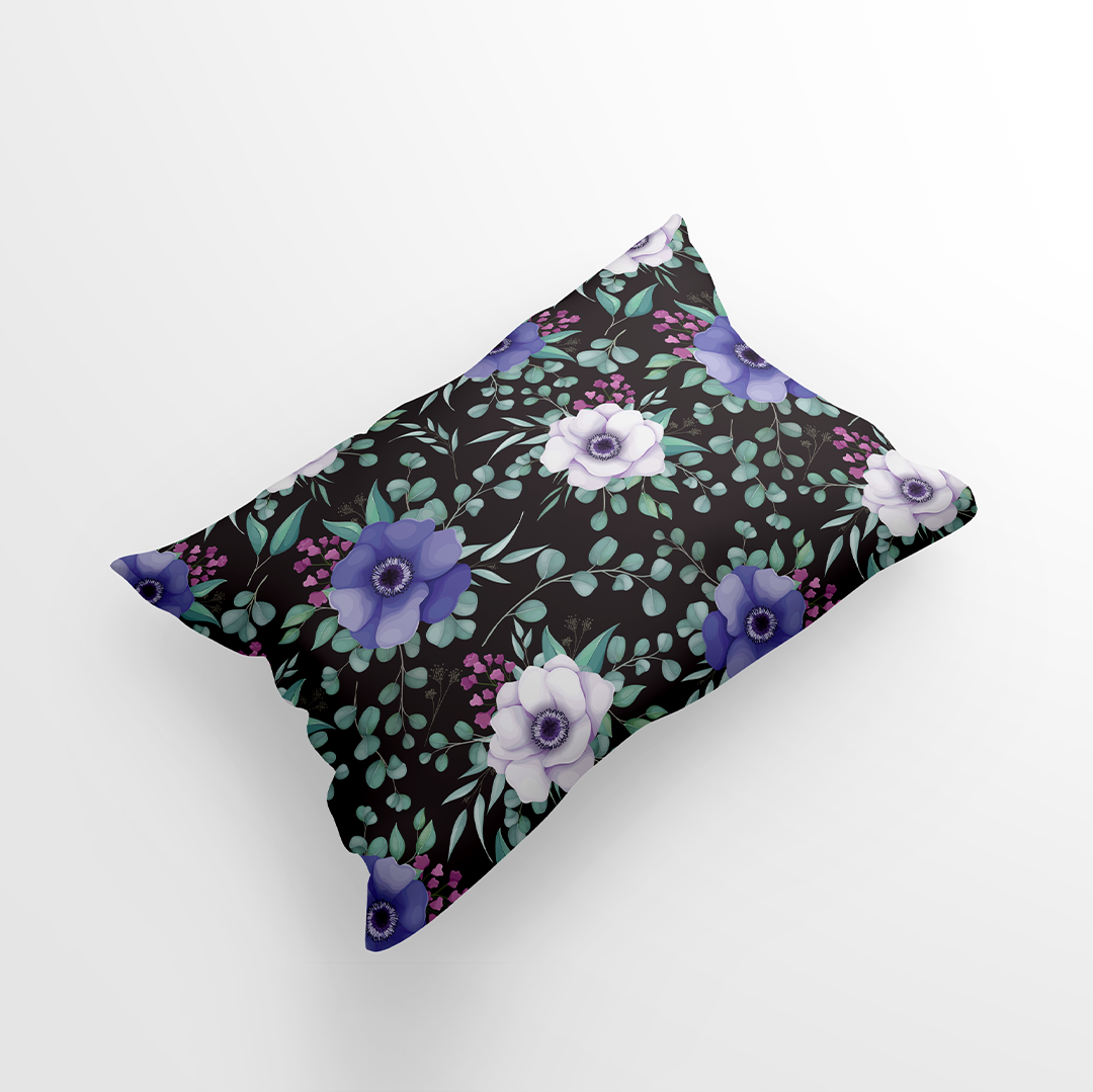 სტანდარტული ბალიშის შამები - ულამაზესი თეთრი და იასამნისფერი ყვავილების უნაკერო ნიმუში - M10115