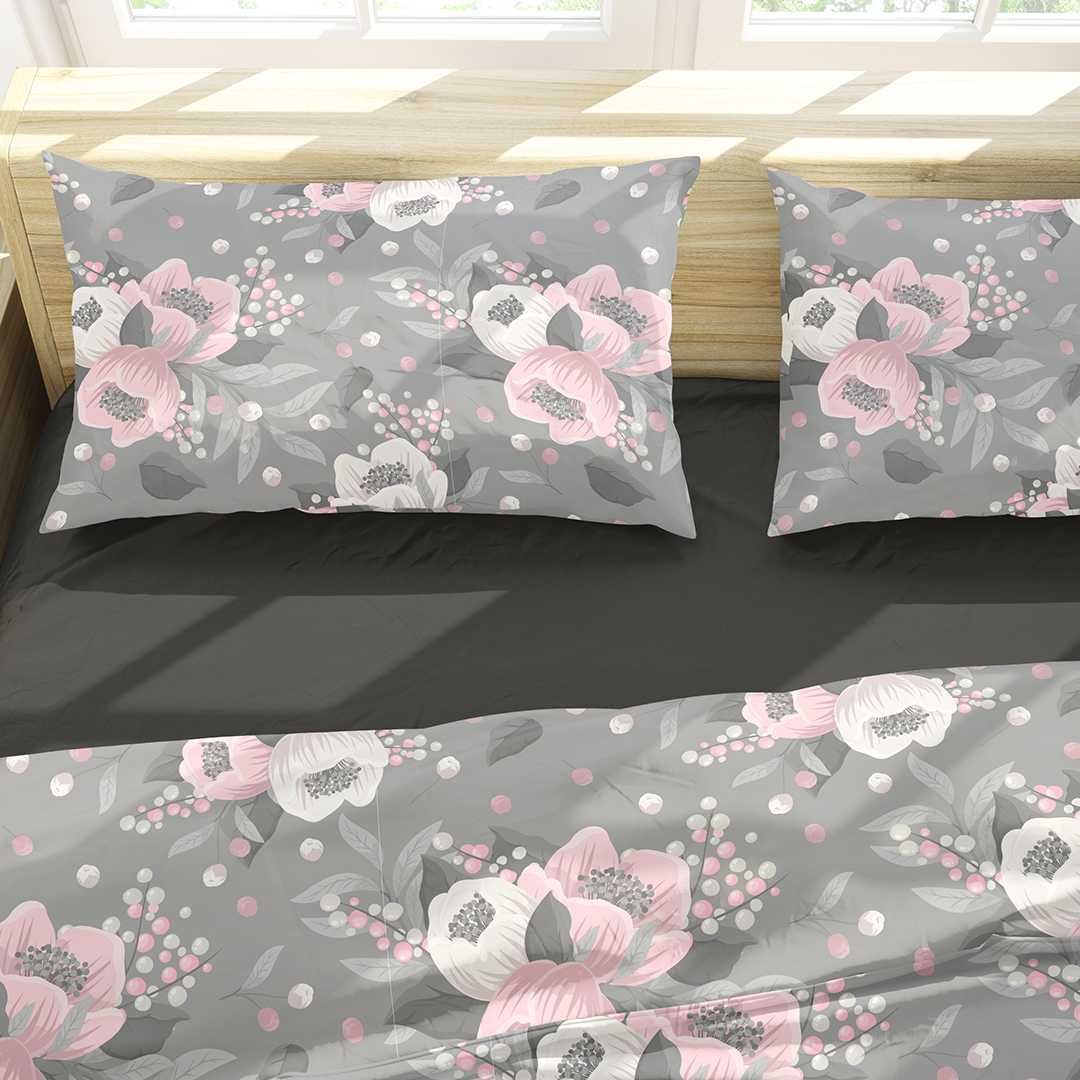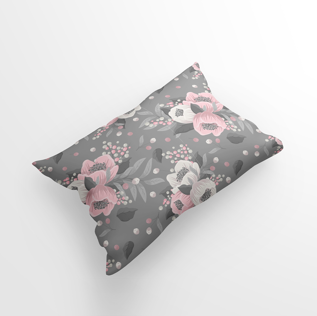 სტანდარტული ბალიშის შამები -ყვავილოვანი უნაკერო ნიმუში ნაცრისფერი ფონის ვარდისფერი ყვავილები -m10028