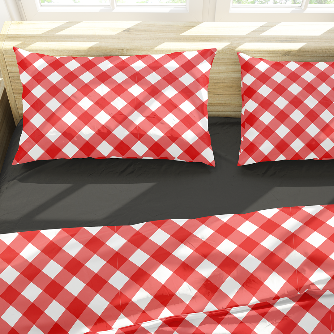 სტანდარტული ბალიშის შამები - ტარტანის პლედი უნაკერო ნიმუშები - ვალენტინი წითელი - თეთრი - m10092