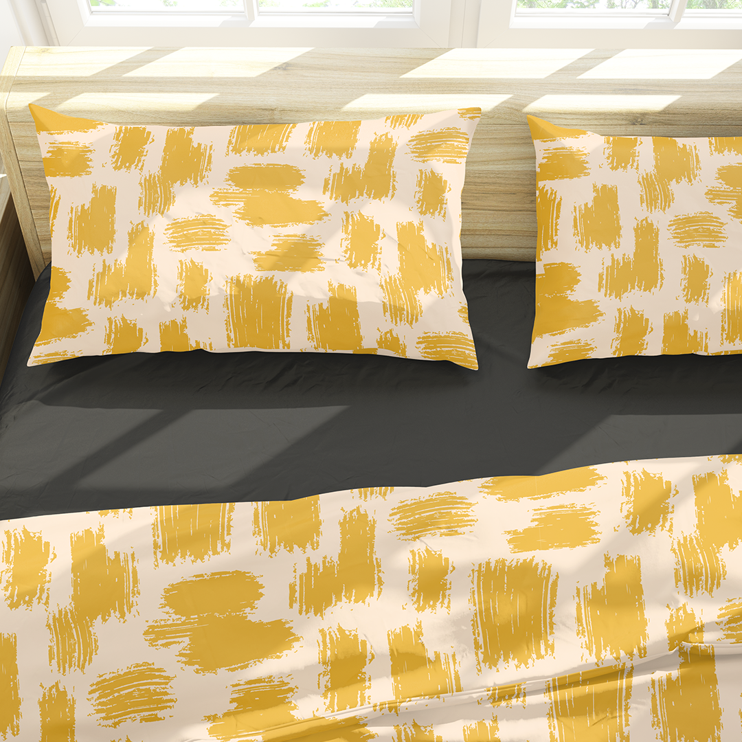 სტანდარტული ბალიშის შამები - სხვადასხვა აბსტრაქტული ფუნჯის შტრიხების ნიმუში ყვითელი და კრემისფერი ფონი -m10039