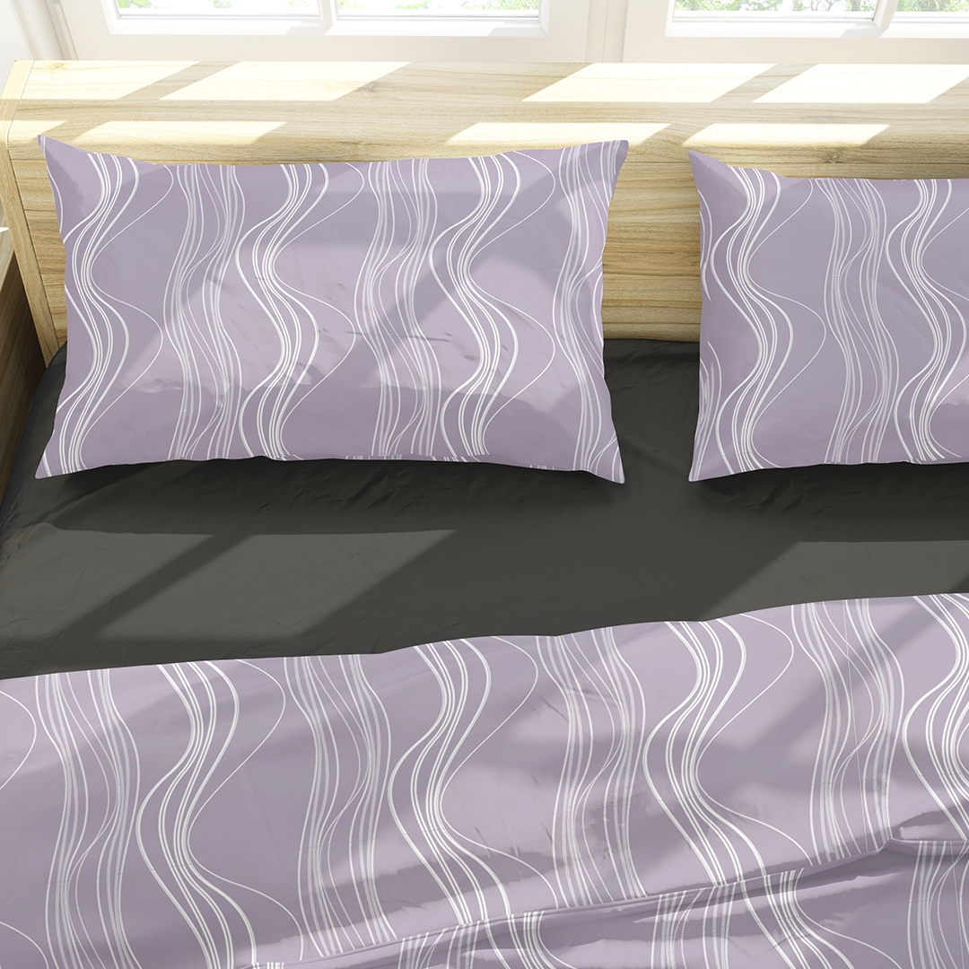 სტანდარტული ბალიშის შამები - თეთრი მოსახვევი ხაზები აბსტრაქტული ნიმუშით, მეწამული უწყვეტი ვექტორული ფონი. -m10027