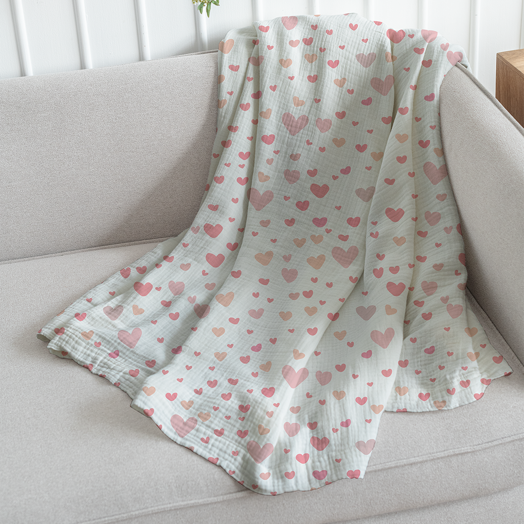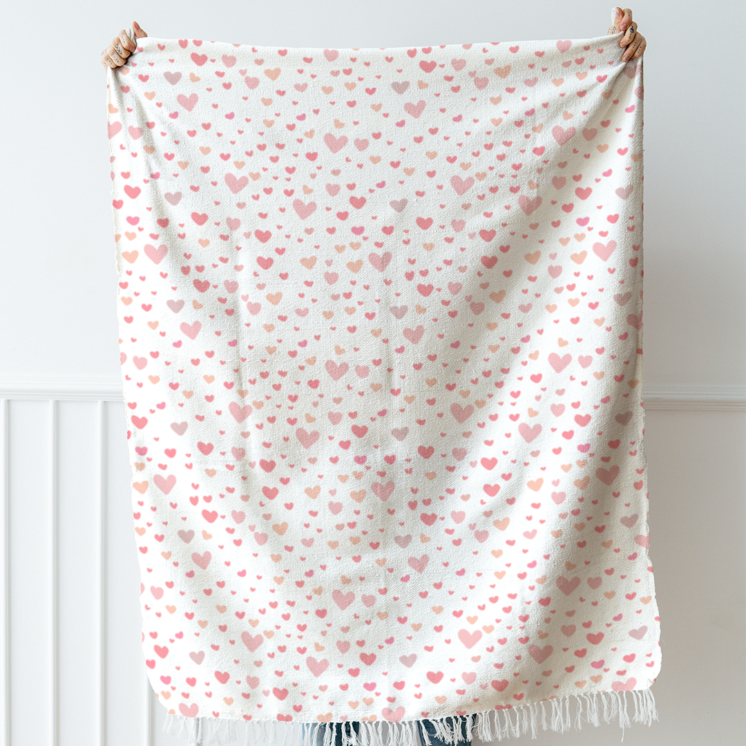საბანი - საყვარელი გულის ნიმუში - თეთრი - ვარდისფერი - M10101