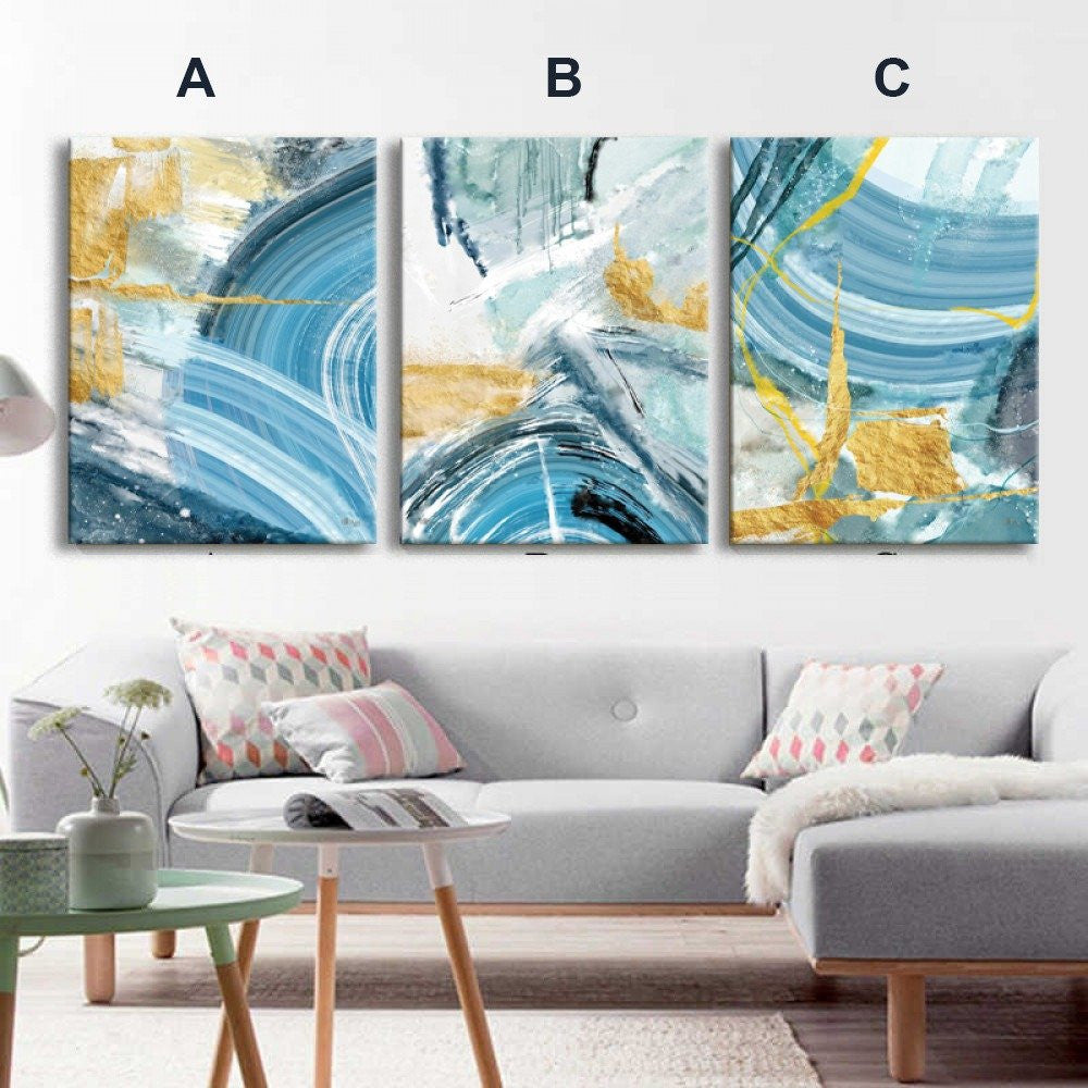 Abstract art paintings gold - blue - white - E3P0001