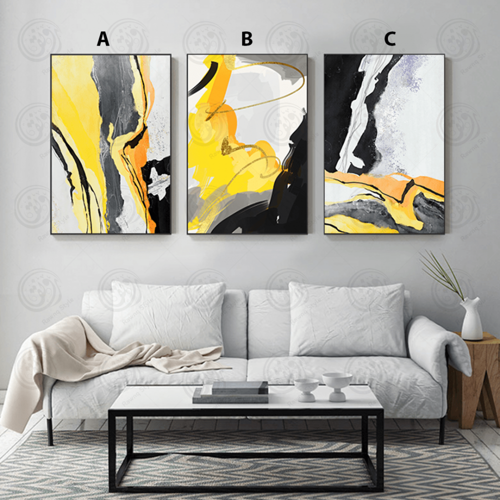 Abstract art paintings in black and yellow shades - E3PR-30056