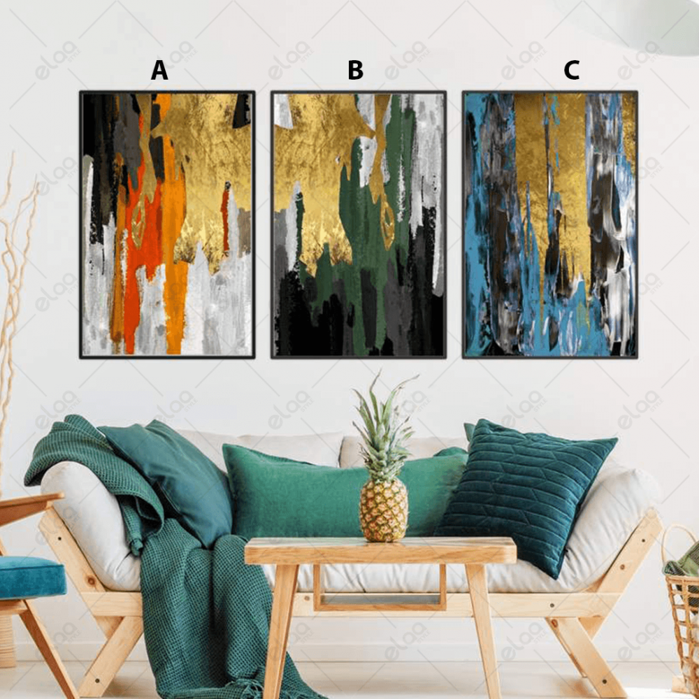 Abstract art paintings in green, yellow and red colors - E3P0127