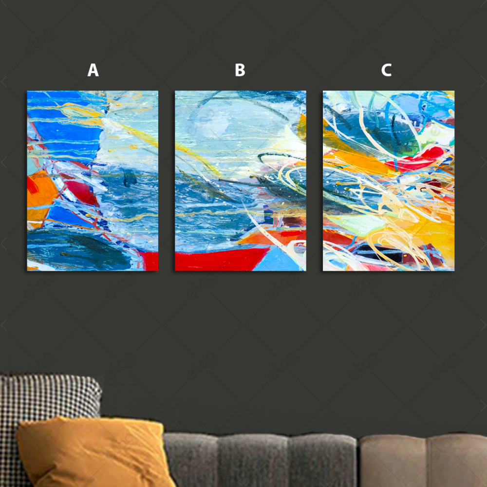 Abstract art paintings in shades of blue, red and yellow - E3P1067