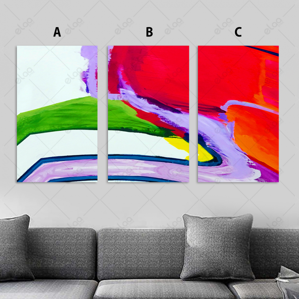 Abstract art paintings in shades of red, violet and green - E3P1079