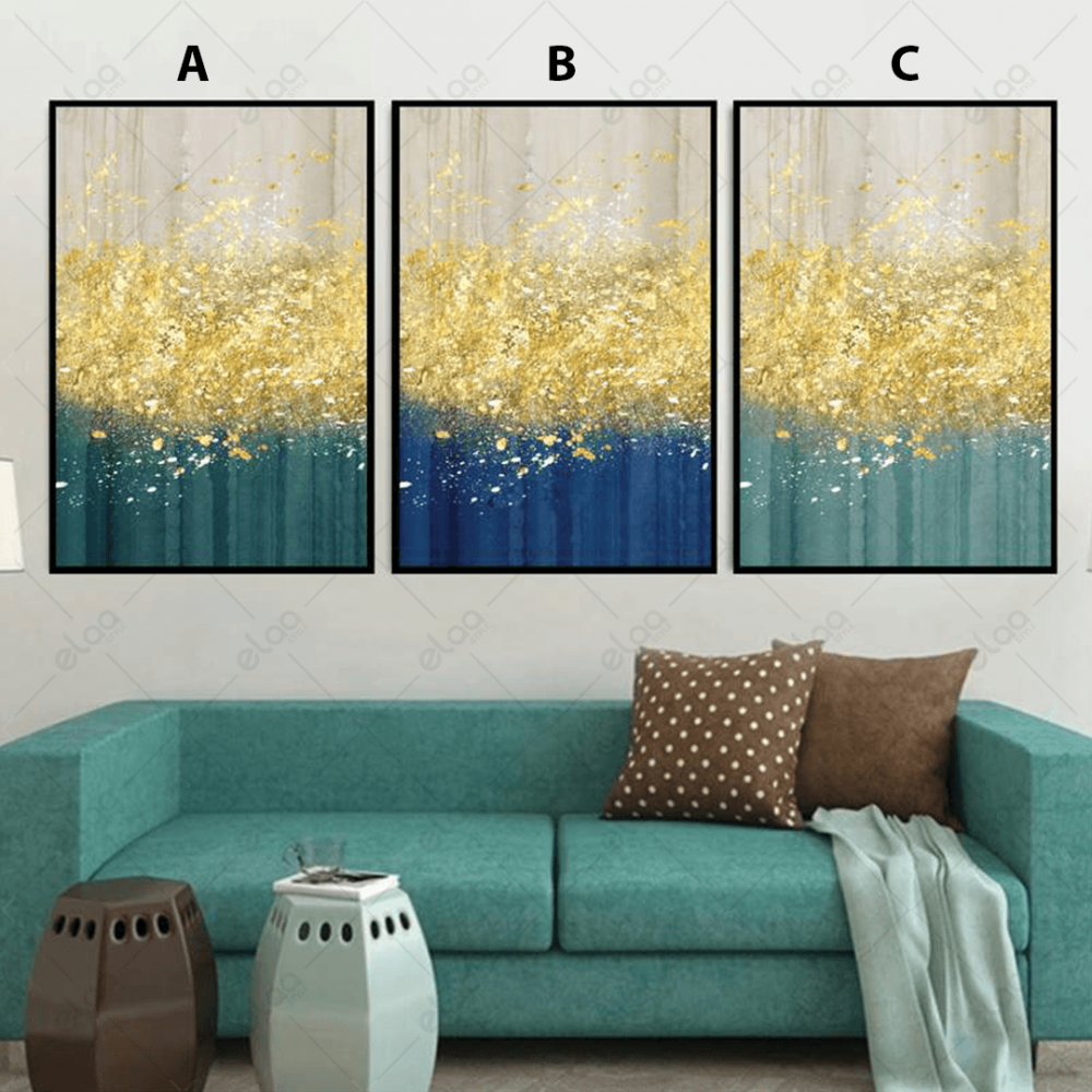 Abstract art paintings in shades of silver, gold and green - E3P0119