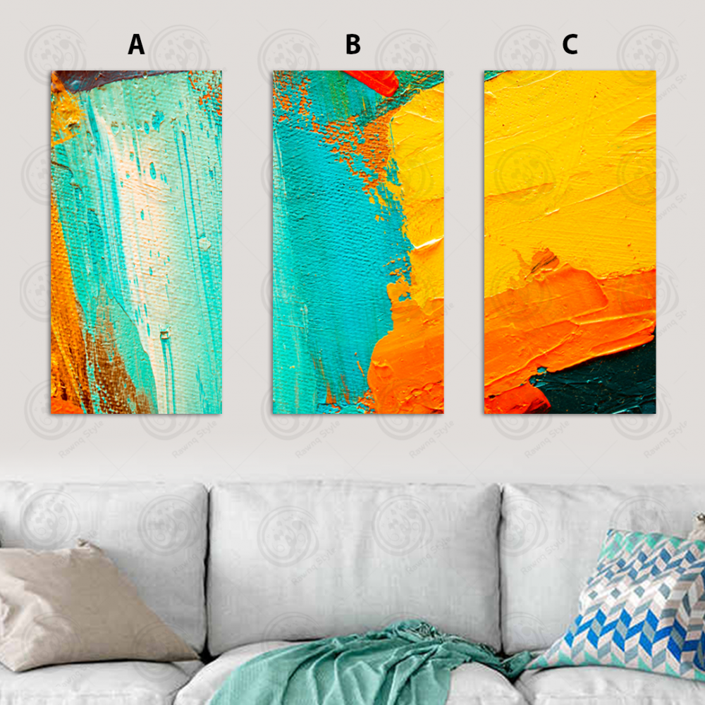 Abstract art paintings in shades of yellow, orange and blue - E3PR-30687