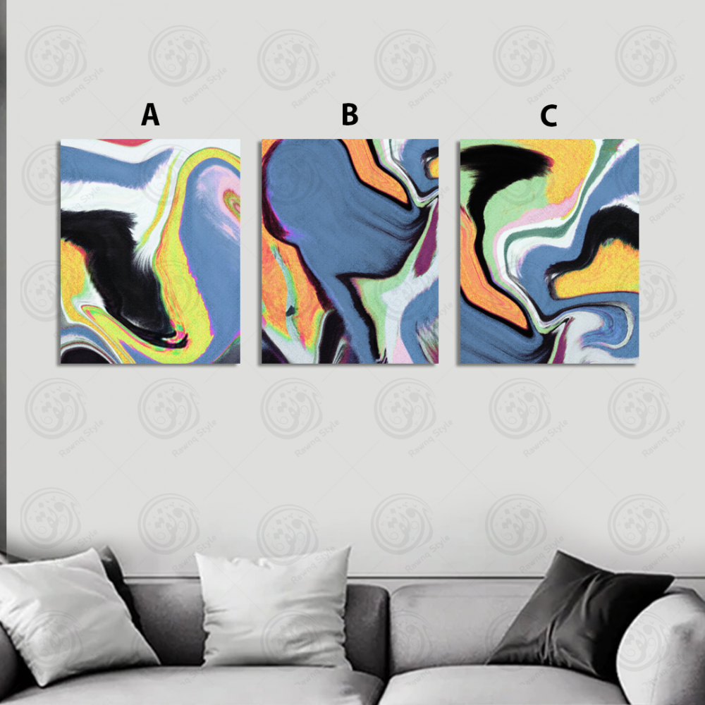 Blue, yellow and pink abstract art paintings - E3PR-30638