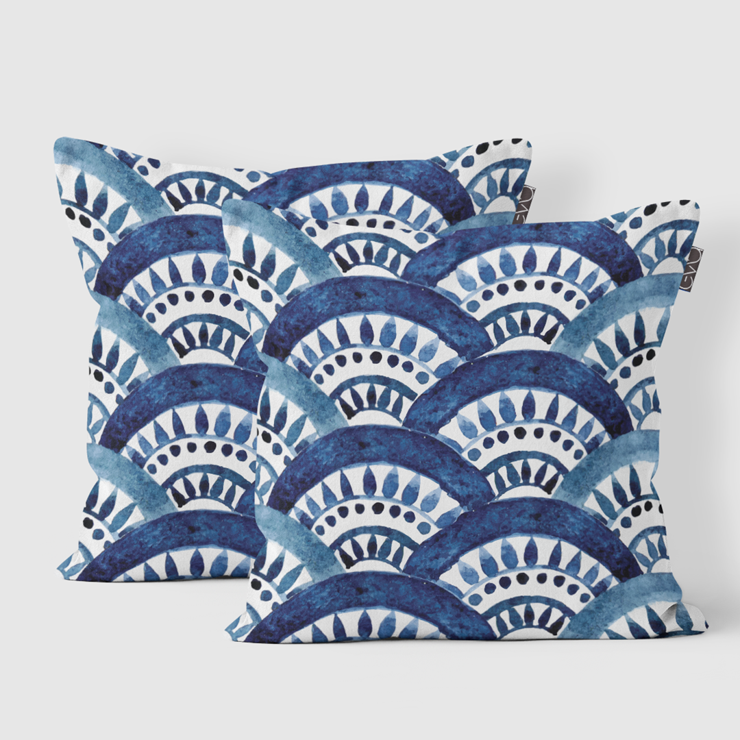 Euro Pillow Shams - watercolor seamless pattern. blue oriental ornament, fish scales. Moroccan tiles. authentic hand drawing -m10048