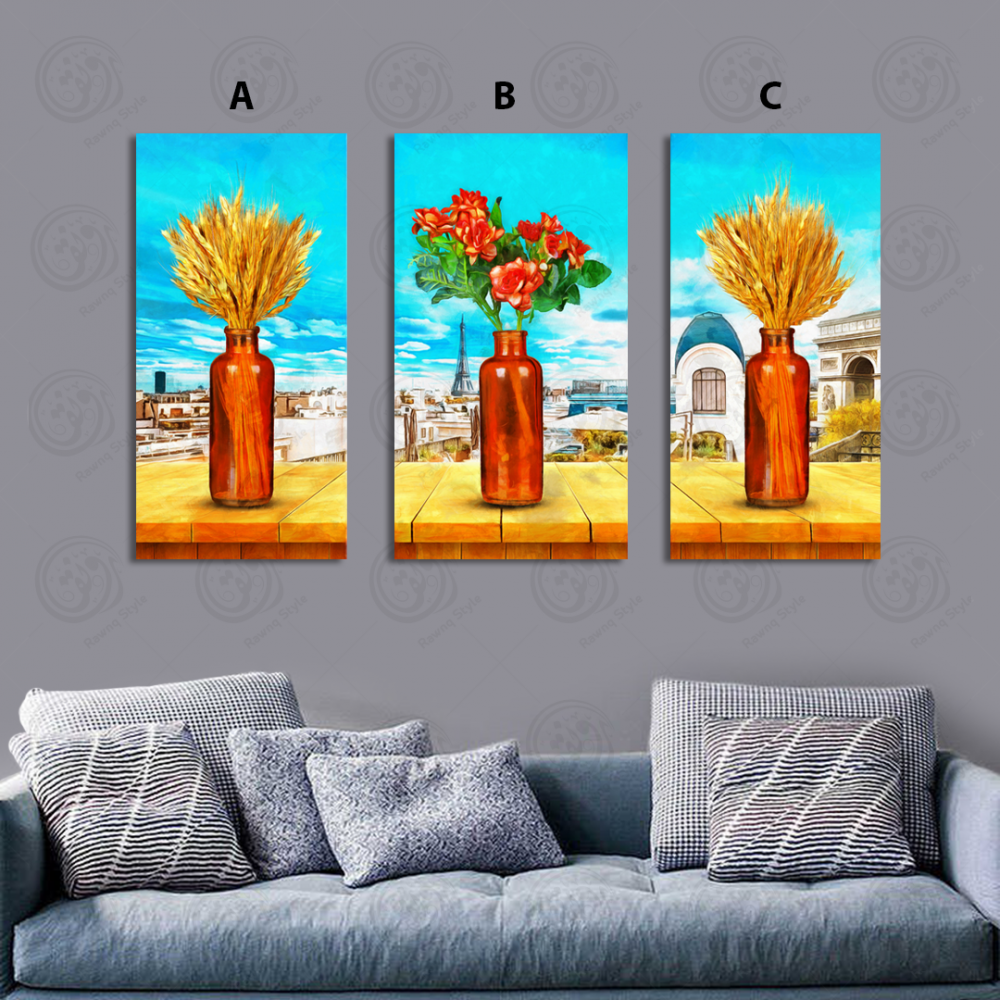 Flower pot art paintings with a view of Paris and the Eiffel Tower - E3PR-30601
