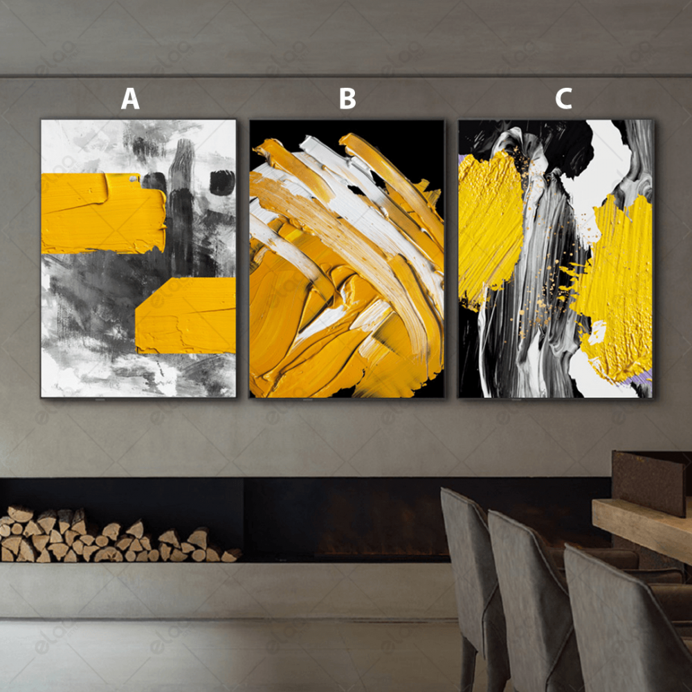 Multicolored yellow, black and white abstract art paintings - E3P0080