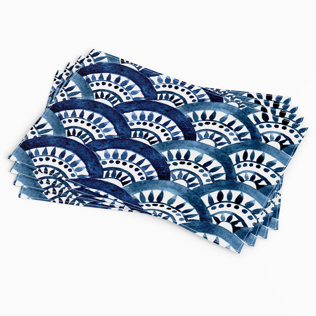 Placemats - watercolor seamless pattern. blue oriental ornament, fish scales. Moroccan tiles. authentic hand drawing -m10048