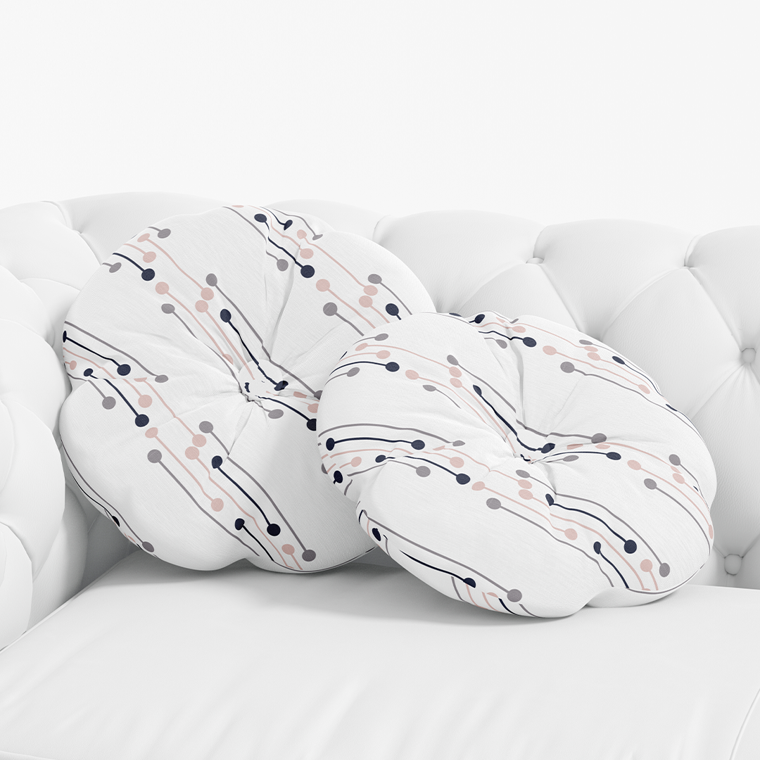 Round Throw Pillow - Abstract luxury geometric pattern. fashion background gray & white & pink -m10035