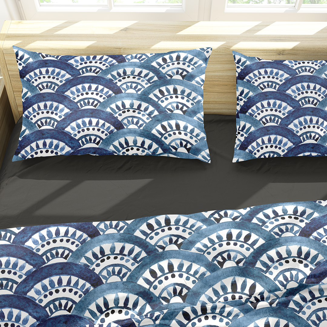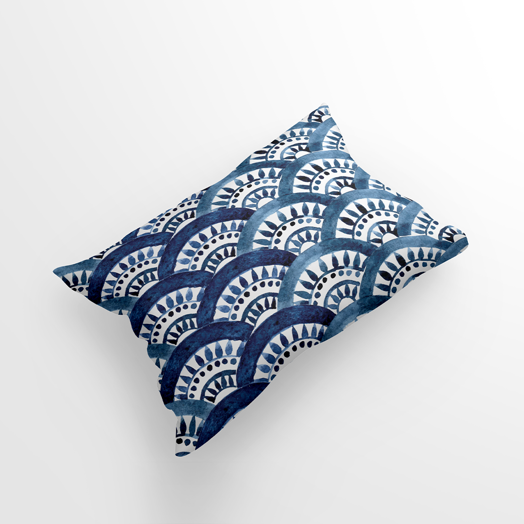Standard Pillow Shams -watercolor seamless pattern. blue oriental ornament, fish scales. Moroccan tiles. authentic hand drawing -m10048