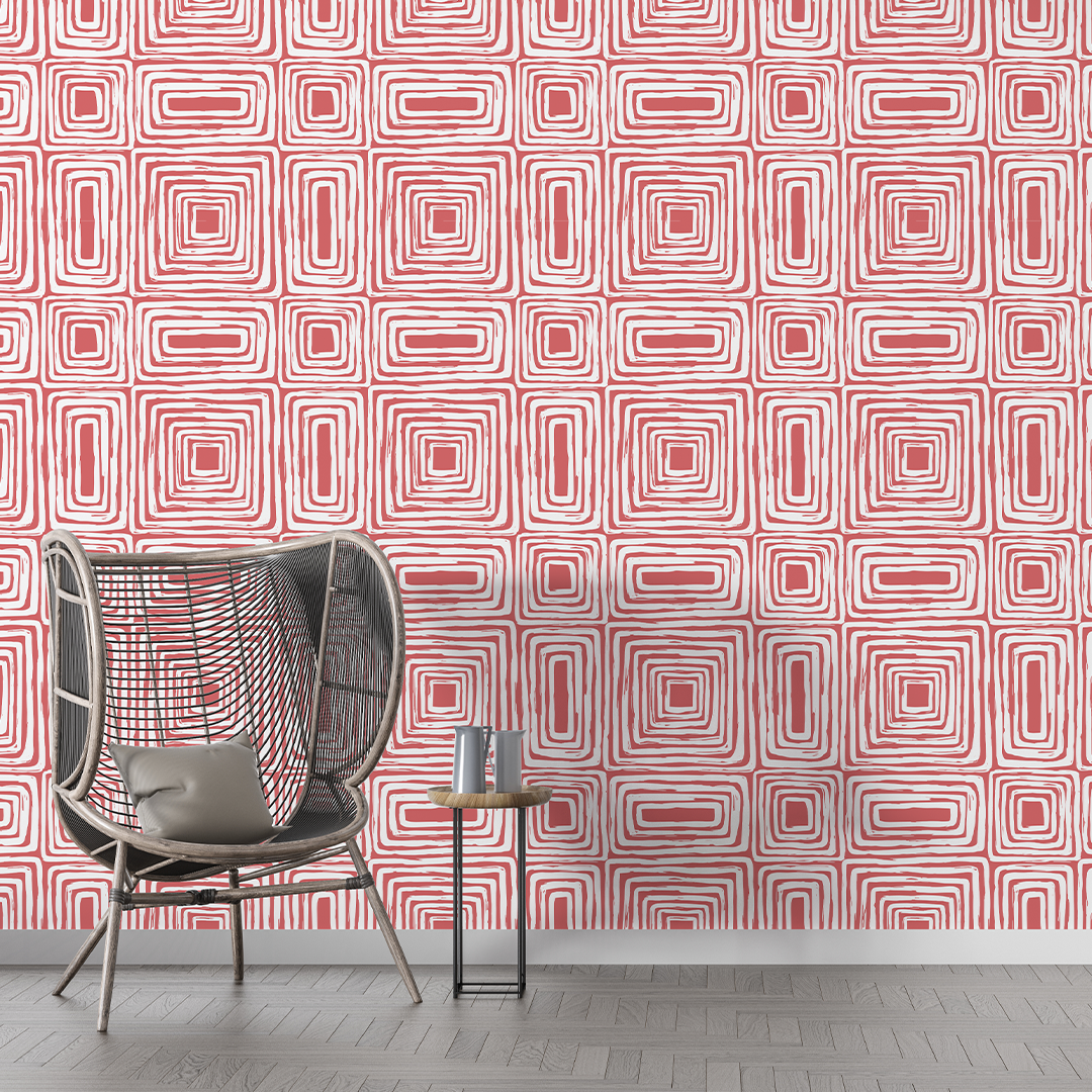 Wallpaper - Minimal elegant line brush stroke shapes and line in nude colors Washed Out Red and white -m10015