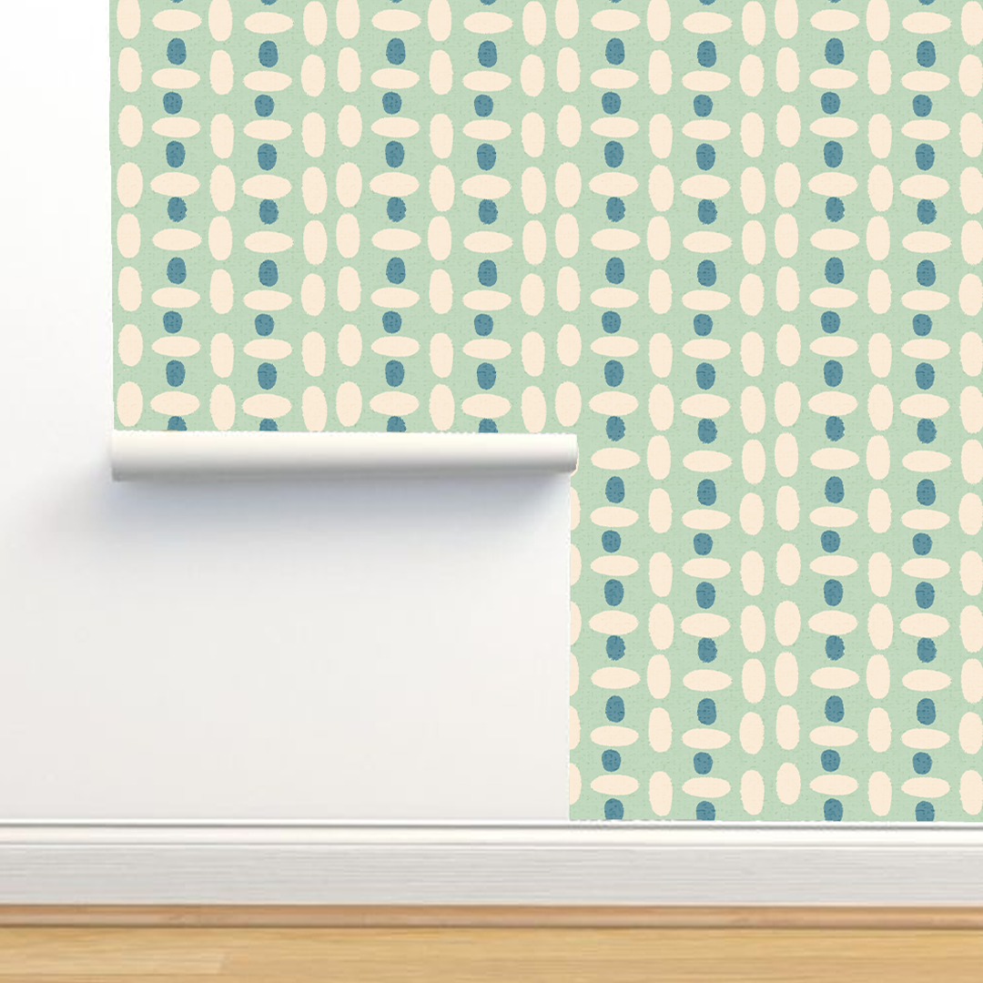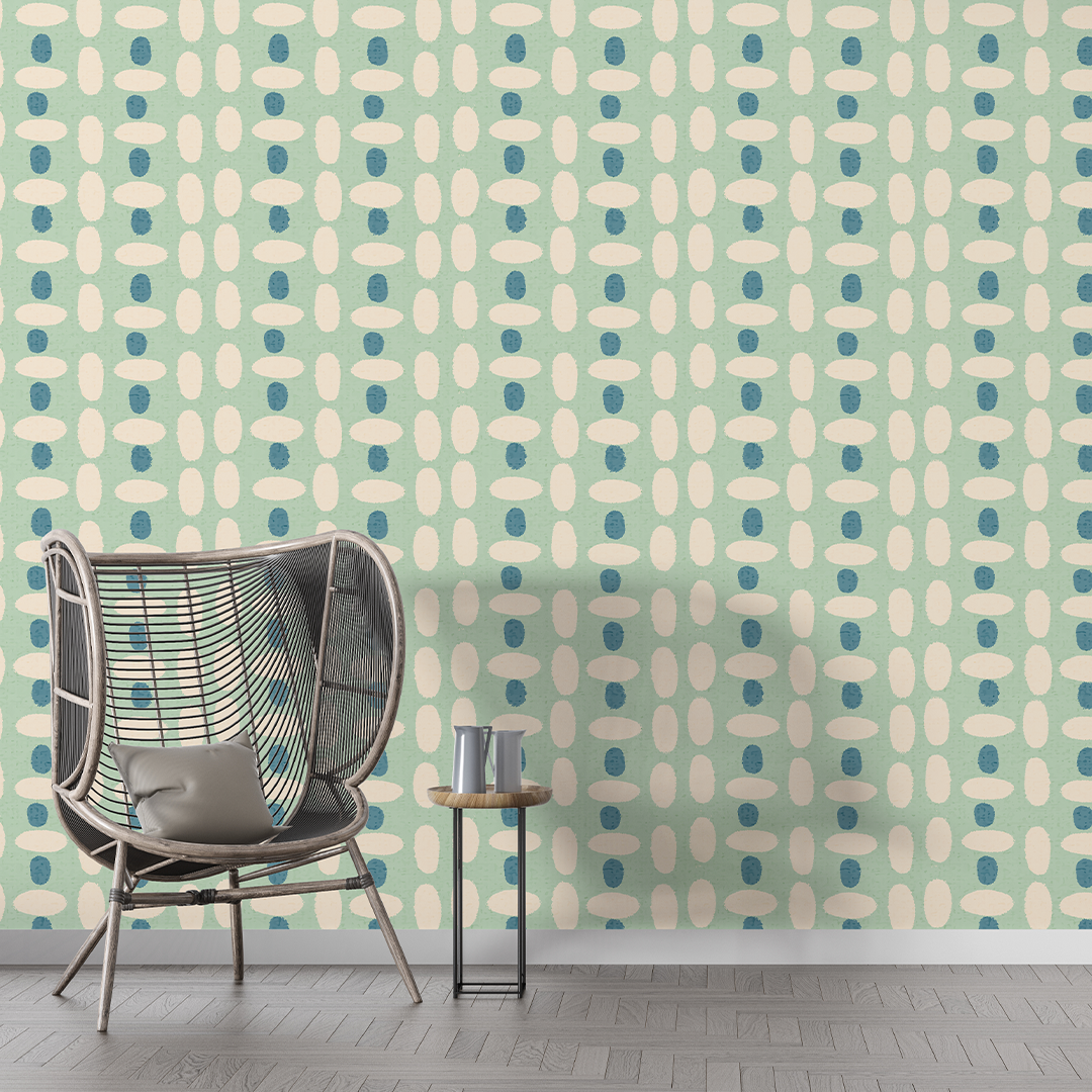 Wallpaper - Seamless pattern Background Antique White - Pixie Green - Hippie Blue -m10073