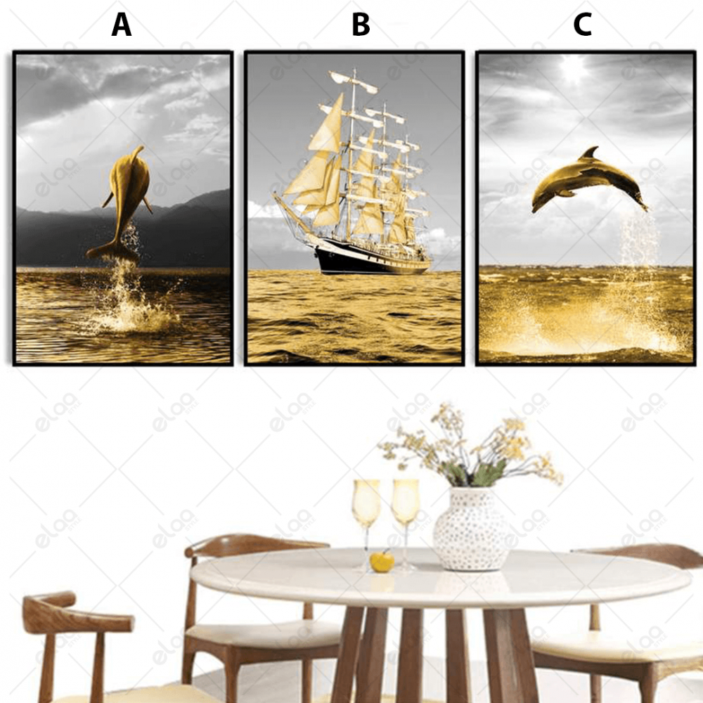 Yellow Dolphins And Ship Abstract Art Paintings - E3P0154
